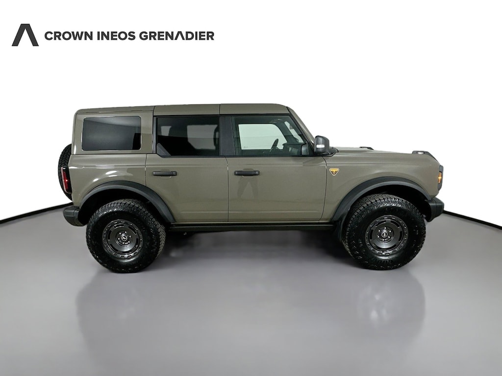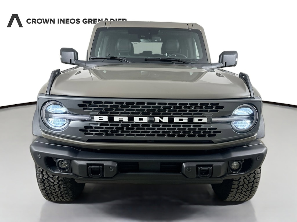 CARFAX One-Owner. 2025 Ford Bronco Badlands Badlands Marsh Gray 4WD 10-Speed Automatic 2.7L EcoBoost V6 Crown Confidence Plan, 2-Door Intelligent Access w/Lock/Unlock, 360-Degree Camera, 4.7 Final Drive Ratio, Adaptive Cruise Control, Ambient Footwell Lighting, BLIS Blind Spot Information System, Connected Navigation, Dr & Pass Illuminated Sliding Visor Vanity Mirrors, Dual Smart Charging USB Ports, Dual-Zone Electronic Automatic Temperature Control, Equipment Group 334A Lux Package, Evasive Steering Assist, Front Parking Sensors, Front Row Heated Seats, Hard Top Sound Deadening Headliner, High Clearance Fender Flares, High Clearance Suspension, Information on Demand Panel, Navigation System, Position-Sensitive Bilstein Shock Absorbers, Power Outlet - Back Side of Center Floor Console, Radio: B&O Sound System by Bang & Olufsen, Rear Parking Sensors, Remote keyless entry, Sasquatch Package, Sideview Mirrors, Universal Garage Door Opener, Wheels: 17" Carbonized Gray Painted Aluminum, 4-Wheel Disc Brakes, 7 Speakers, ABS brakes, Air Conditioning, Alloy wheels, AM/FM radio: SiriusXM with 360L, AM/FM Stereo, Auto High-Beam Headlamps, Auto High-beam Headlights, Auto-dimming Rear-View mirror, Body Color-Painted Hard Top, Brake assist, Compass, Delay-off headlights, Driver door bin, Driver vanity mirror, Dual front impact airbags, Dual front side impact airbags, Electronic Stability Control, Emergency communication system: 911 Assist, Exterior Parking Camera Rear, Front anti-roll bar, Front Bucket Seats, Front Center Armrest, Front fog lights, Front reading lights, Front wheel independent suspension, Fully automatic headlights, Heated door mirrors, Heated front seats, Heated steering wheel, Illuminated entry, Integrated roll-over protection, Internet access capable: FordPass Connect, Lane-Keeping System, Leather Shift Knob, Low tire pressure warning, Marine Grade Vinyl Heated Bucket Seats, Occupant sensing airbag, Outside temperature display, Overhead airbag, Overhead console, Panic alarm, Passenger door bin, Passenger vanity mirror, Power door mirrors, Power steering, Power windows, Pre-Collision Assist w/Automatic Emergency Braking, Radio data system, Rear-View Camera, Rear-Window Defroster & Washer