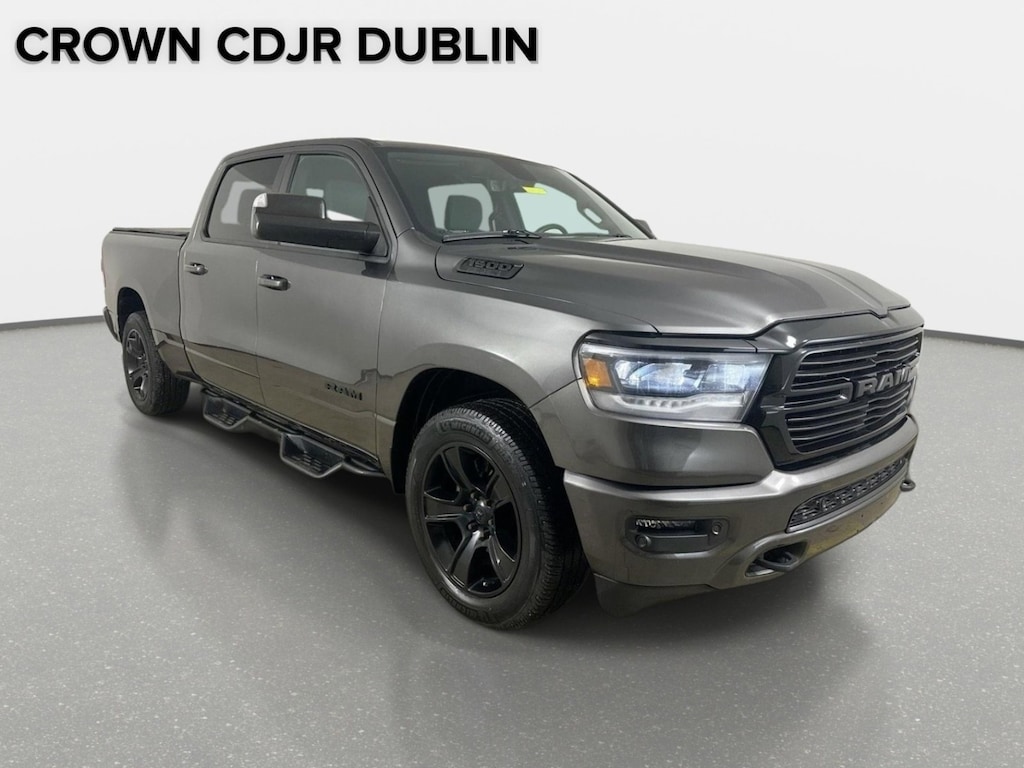 **CROWN CONFIDENCE PLAN USED CAR GUARANTEE Certified, **CROWN CONFIDENCE PLAN USED CAR GUARANTEE Certified, 1-Yr SiriusXM Guardian Trial, 115V Auxiliary Power Outlet, 12" Touchscreen Display, 3 Rear Seat Head Restraints, 4 Way Front Headrests, 4-Wheel Disc Brakes, 40/20/40 Split Bench Seat, 400W Inverter, 48V Belt Starter Generator, 4G LTE Wi-Fi Hot Spot, 5-Year SiriusXM Traffic Service, 5-Year SiriusXM Travel Link Service, 6 Speakers, 9 Amplified Speakers w/Subwoofer, ABS brakes, Air Conditioning, Alloy wheels, AM/FM radio, Anti-Spin Differential Rear Axle, Apple CarPlay, Big Horn Level 2 Equipment Group, Black Exterior Mirrors, Black Trailer Tow Power Mirrors, Brake assist, Bumpers: chrome, Cloth Bench Seat, Compass, Delay-off headlights, Deluxe Cloth Bucket Seats, Disassociated Touchscreen Display, Driver door bin, Dual front impact airbags, Dual front side impact airbags, Electronic Stability Control, Exterior Mirrors Courtesy Lamps, Exterior Mirrors w/Heating Element, Exterior Mirrors w/Supplemental Signals, For Details, Visit DriveUconnect.com, For More Info, Call 800-643-2112, Front anti-roll bar, Front Center Armrest w/Storage, Front fog lights, Front LED Fog Lamps, Front License Plate Bracket, Front reading lights, Front Seat Back Map Pockets, Front wheel independent suspension, Fully automatic headlights, Google Android Auto, GPS Antenna Input, GPS Navigation, HD Radio, Heads-Up Display, Heated door mirrors, Illuminated entry, Integrated Center Stack Radio, Integrated Voice Command w/Bluetooth, Leather steering wheel, LED CHMSL Lamp, LED Footwell Lighting, LED Reflector Headlamps, LED Taillamps, Low tire pressure warning, MOPAR Front & Rear Rubber Floor Mats, Night Edition, Occupant sensing airbag, Outside temperature display, Overhead airbag, Overhead console, Panic alarm, ParkSense Front/Rear Park Assist w/Stop, ParkView Rear Back-Up Camera, Passenger door bin, Passenger vanity mirror, Power door mirrors, Power steering, Power windows, Premium Lighting Group, Protection Group, Quick Order Package 25Z Big Horn, Radio data system, Radio: Uconnect 12 w/Navigation, Radio: Uconnect 3 w/5" Display, Rear 60/40 Folding Seat, Rear anti-roll bar, Rear seat center armrest, Rear step bumper, Rearview Autodim Digital Display Mirror, Remote keyless entry, Remote Start System, SiriusXM Radio Service, SiriusXM Satellite Radio, SiriusXM Traffic Plus, SiriusXM Travel Link, SiriusXM w/360L, Speed control, Split folding rear seat, Steering wheel mounted audio controls, Tachometer, Technology Group, Telescoping steering wheel, Tilt steering wheel, Tow Hooks, Traction control, Trailer Brake Control, Trailer Tow Mirrors, Trip computer, USB Host Flip, Variably intermittent wipers, Voltmeter, Wheels: 18" x 8" Cast-Aluminum Painted, Wheels: 20" x 9.0" Premium Paint/Polished.